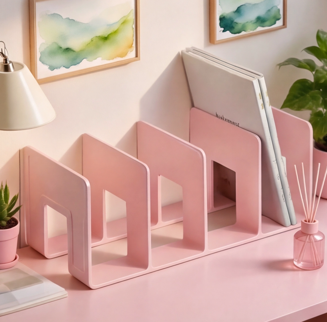 Keep your desk beautifully organized with this colorful multi-grid desktop organizer. Designed for students and creative spaces, it helps store books, notebooks, and stationery while adding a playful aesthetic touch to your desk setup.