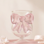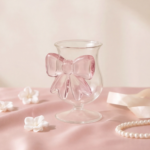 A stylish glass goblet designed with a delicate bow accent that adds a luxurious touch to your drinkware collection. Perfect for iced drinks, juices, or elegant aesthetic setups.