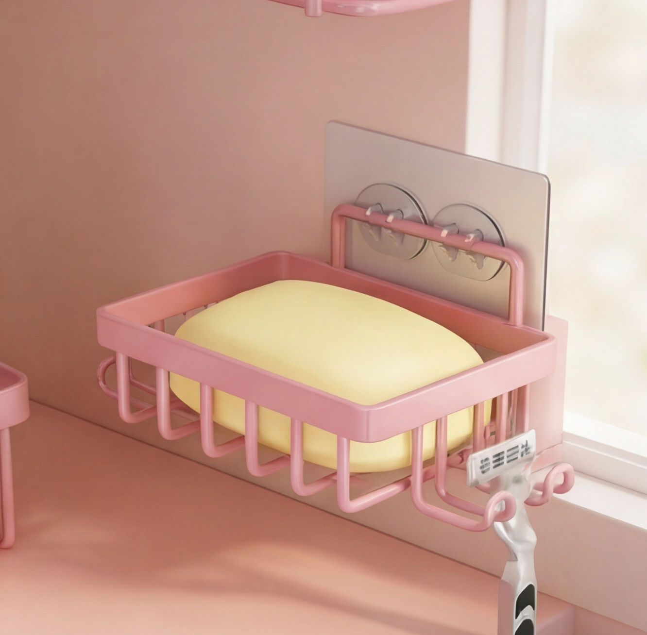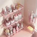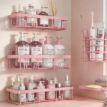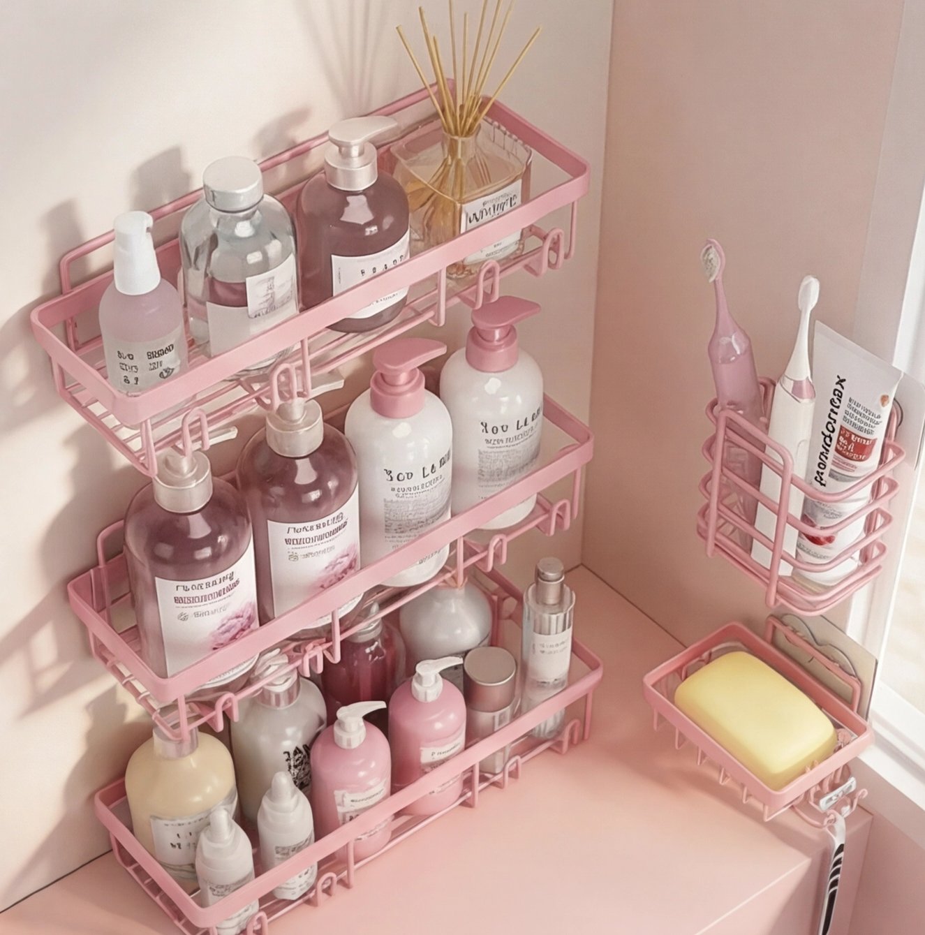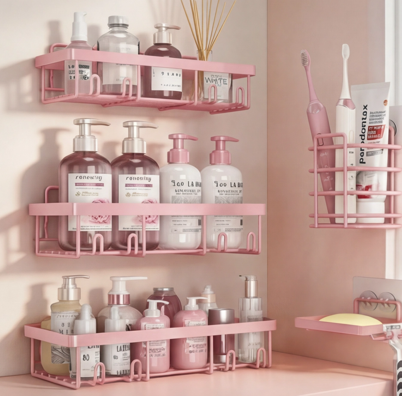 Keep your shower beautifully organized with this elegant pink storage set. Designed to combine functionality with a soft aesthetic, it helps keep all your essentials neatly within reach.