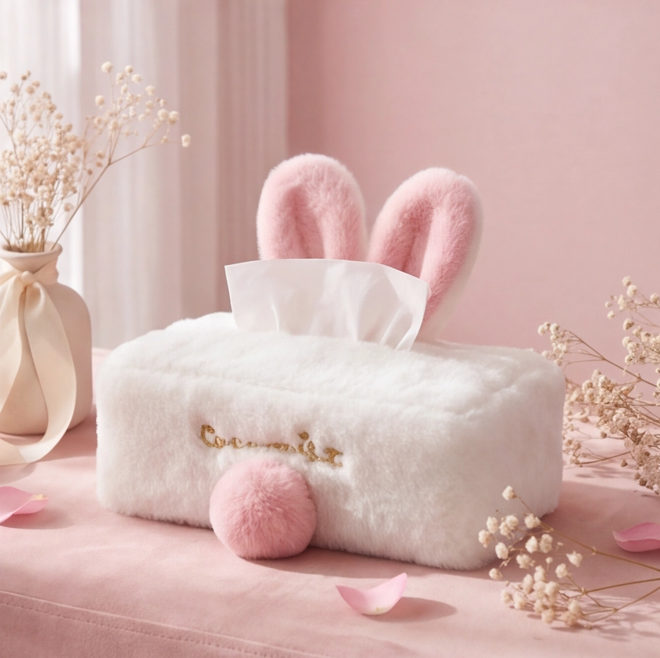 A playful yet cozy decor piece that instantly softens your space. This adorable bunny tissue holder adds warmth and personality to your desk, vanity or bedside table.
