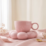 A beautifully crafted ceramic mug set inspired by soft sunflower shapes. With its delicate saucer and elegant glaze, it turns your everyday coffee or tea into a calm and aesthetic ritual.